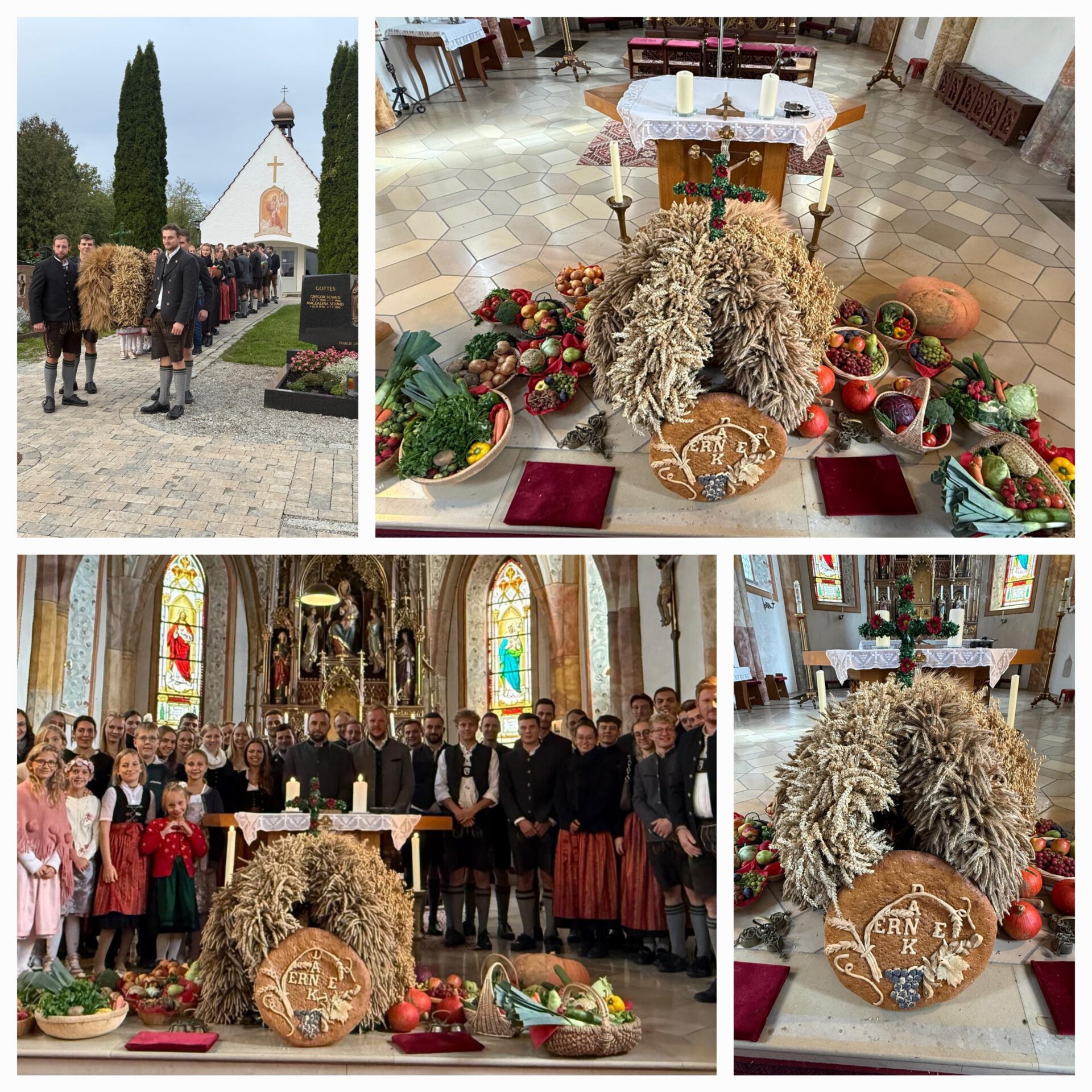 Gottesdienst am 5.10.25 mit der Landjugend in Alling, die die Erntekrone als Symbol des Reichtums der Ernte zu dem wunderschön gestalteten Altar voller Brot, Obst und Gemüse trugen. An Erntedank drücken wir die Dankbarkeit für die Früchte der Ernte, aber auch für das tägliche Brot und alle Lebensgrundlagen aus. Das Fest erinnert daran, dass Nahrung und Wohlstand nicht selbstverständlich sind, und lädt dazu ein, auch mit Bedürftigen zu teilen.